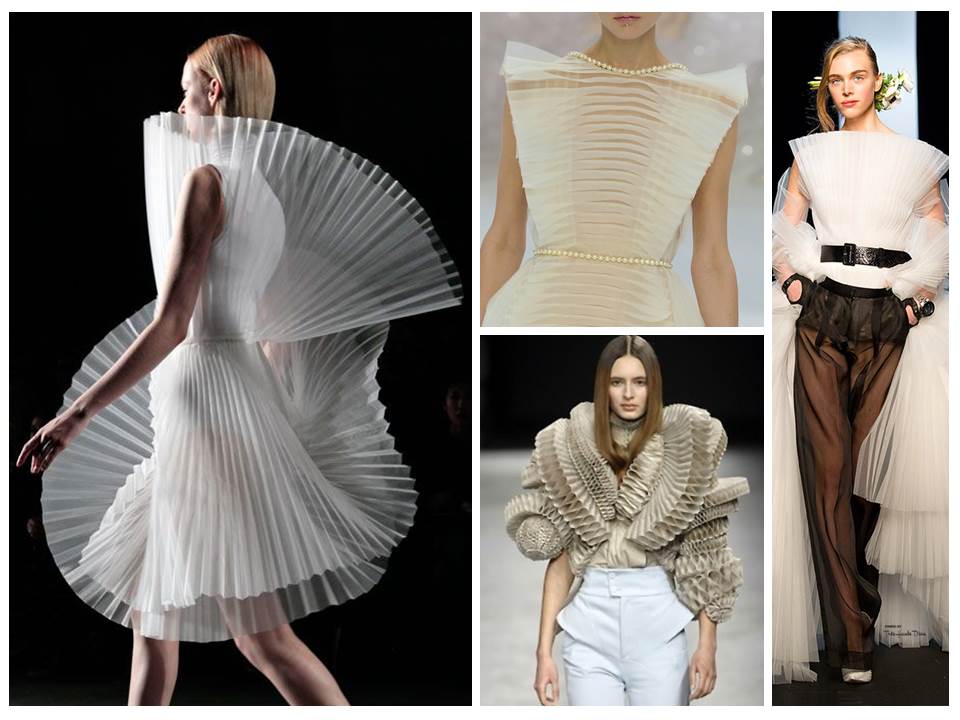 Desde la antigüedad el arte del plisado se ha utilizado como técnica para cambiar el aspecto y agregar distinción a las telas. En Egipto esta técnica se aplicó al lino utilizado en la vestimenta de las familias reales como señal inequívoca del poder, gloria y divinidad faraónica. En Grecia este tratamiento fue dado a los mantos y túnicas de los Helénicos; este arte se extendió hasta el siglo XX cuando Mariano Fortuni logró el éxito con su túnica Delphos y recuerdos icónicos invaden nuestra mente con la imagen de Marilyn Monroe sujetando su vestido blanco plisado agitado por el viento así como también, con el trabajo del diseñador Issey Miyake quien logró el aplauso del mundo con sus magníficos origamis aplicados a sus diseños.